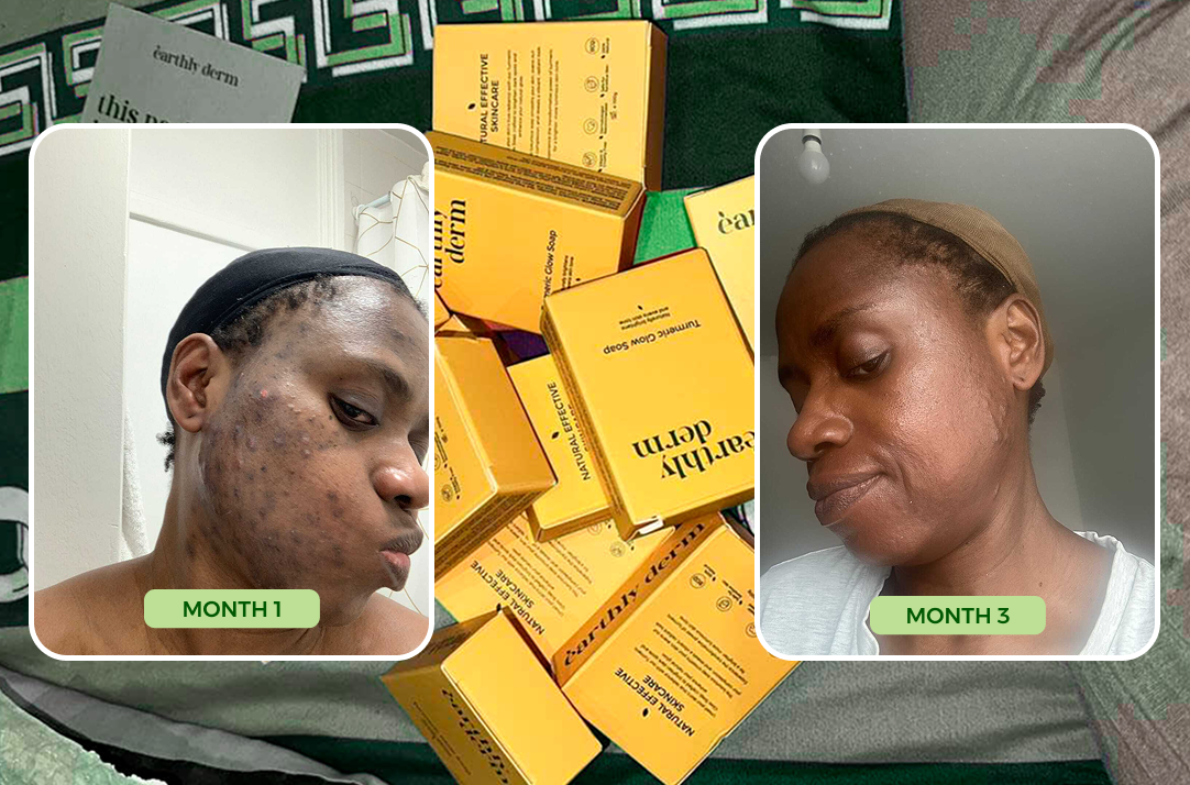 "Earthly Derm Turmeric Glow Soap was recommended by a trusted friend whom I admired his toned face and so I decided to not just give it a try but to trust the product 100% I ordered six bars at once. It has been one week since usage and All I can say is Thank God I trusted my friend and listened to my instincts, the difference is already clear."