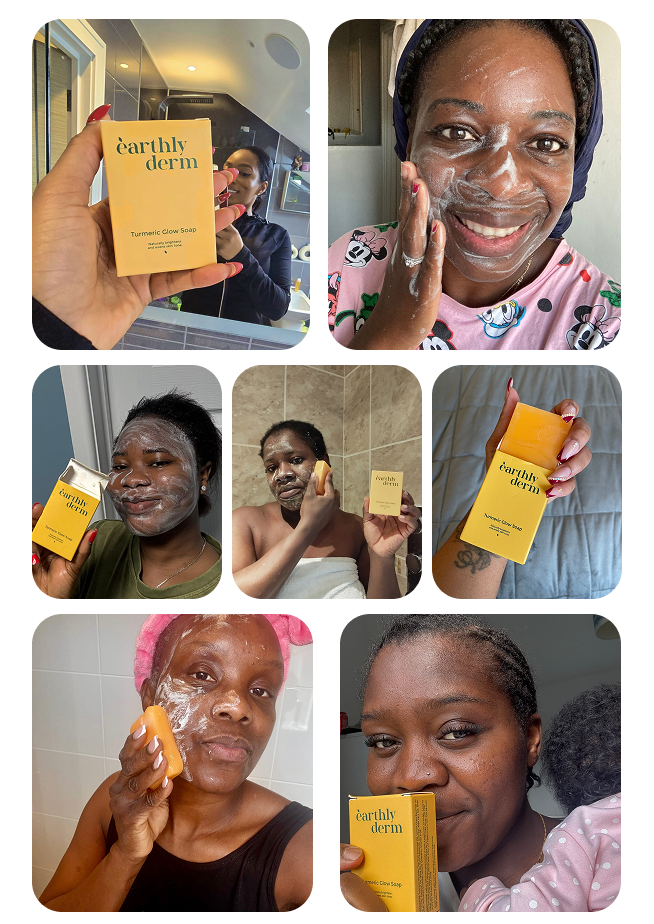 "I have seen a huge improvement to the dark spots and overall look of my skin since starting to use the Earthly Derm Turmeric Soap. I keep recommending to friends and family giving them as gifts at first, now they are making their own orders. Win-win🙌🏾🙌🏾"