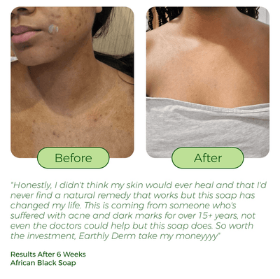 I've been a customer of Earthly Derm for a while now and this soap is unreal. I struggled with acne and dark marks for years. In just a few months my chest has almost completely cleared, and dark marks are basically all gone. I could cry with happiness. Honestly nothing else has ever worked except from this soap.